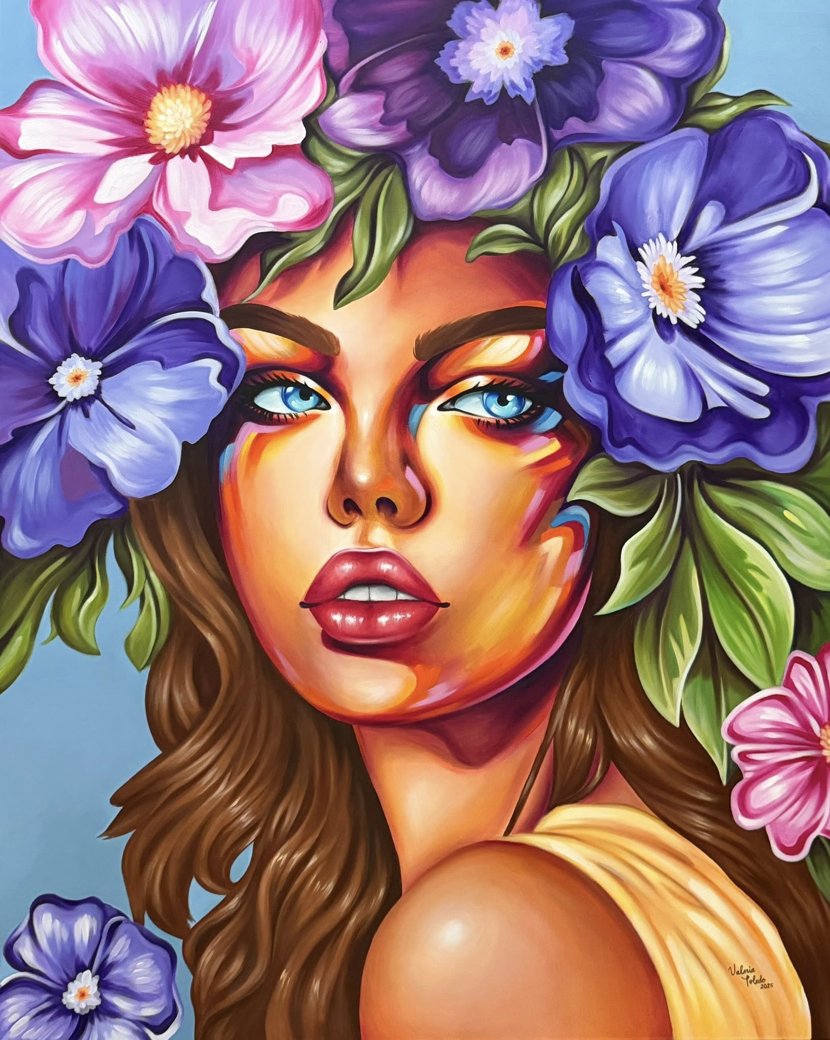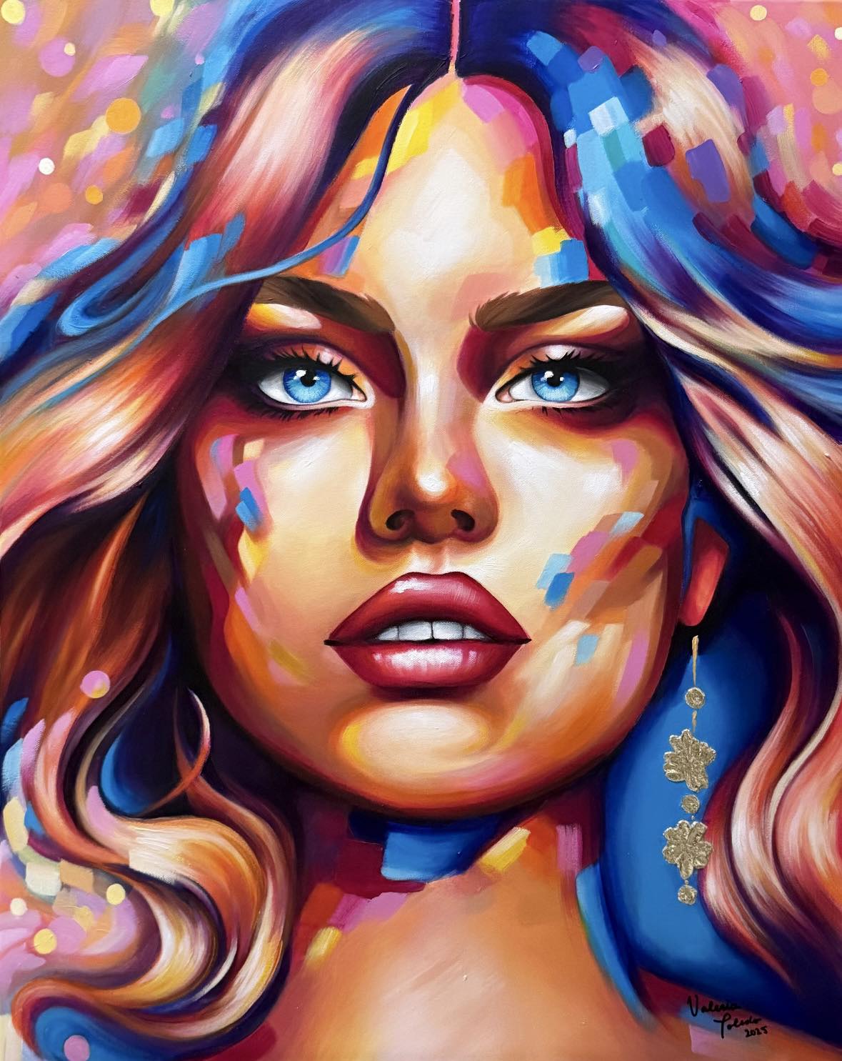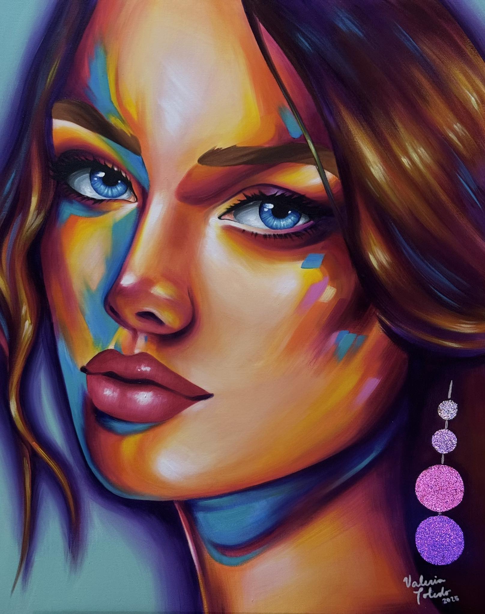 “ Las obras representan la esencia emocional de la mujer, resaltando su fuerza, sensibilidad y presencia. Se inspiran en el color como lenguaje y en las historias que transmiten las miradas. Su proceso creativo se basa en la aplicación gradual de capas de acrílico francés sobre lienzo, trabajando luces, texturas y contrastes hasta alcanzar un retrato vibrante y vivo.”