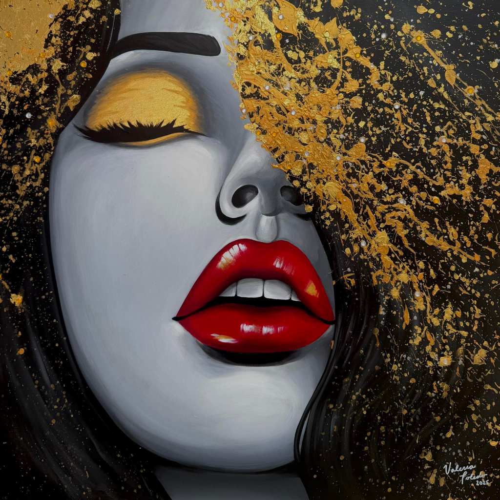 Obra de arte sobre lienzo de algodón 22×28 en pintura acrílica francesa de la marca Sennelier Abstract con detalles en foil dorado.