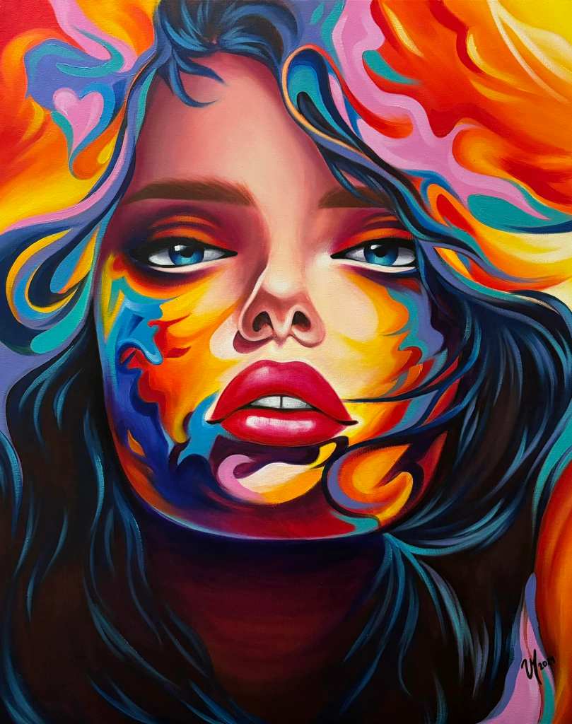 Obra realizada por Valeria Toledo en pintura acrílica francesa de la marca Sennelier Abstract sobre lienzo 24×30.